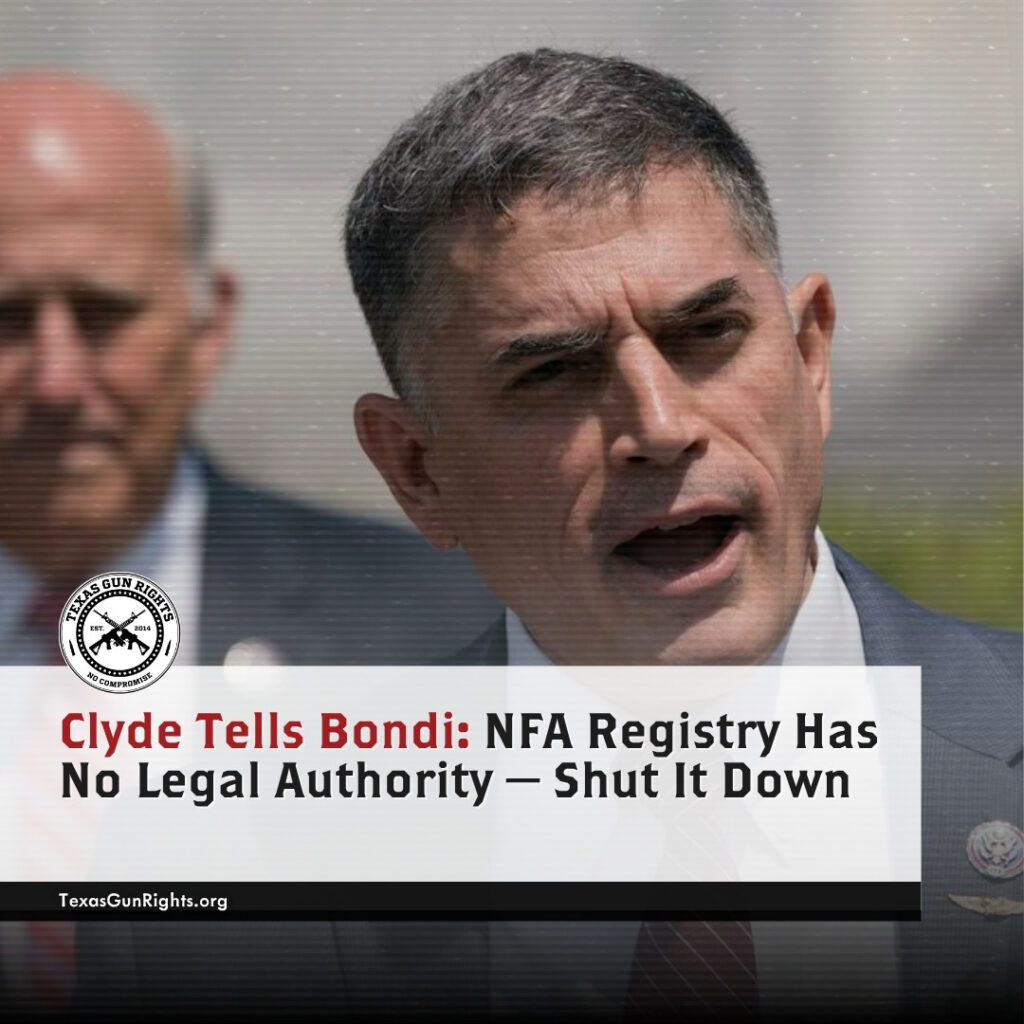 “Cornyn’s cowardice forced gun owners into this bizarre situation where Congress eliminated the tax but left the police-state registry intact. Now Clyde and a handful of fighters are trying to clean up the mess Cornyn and the establishment gun lobby created. Texas Gun Rights stands firmly with Clyde — and we’re done letting D.C. politicians and bureaucrats trample our rights to appease a Democrat parliamentarian. The NFA isn’t sacred. It’s unconstitutional — and it’s time to rip it apart, root and branch.”