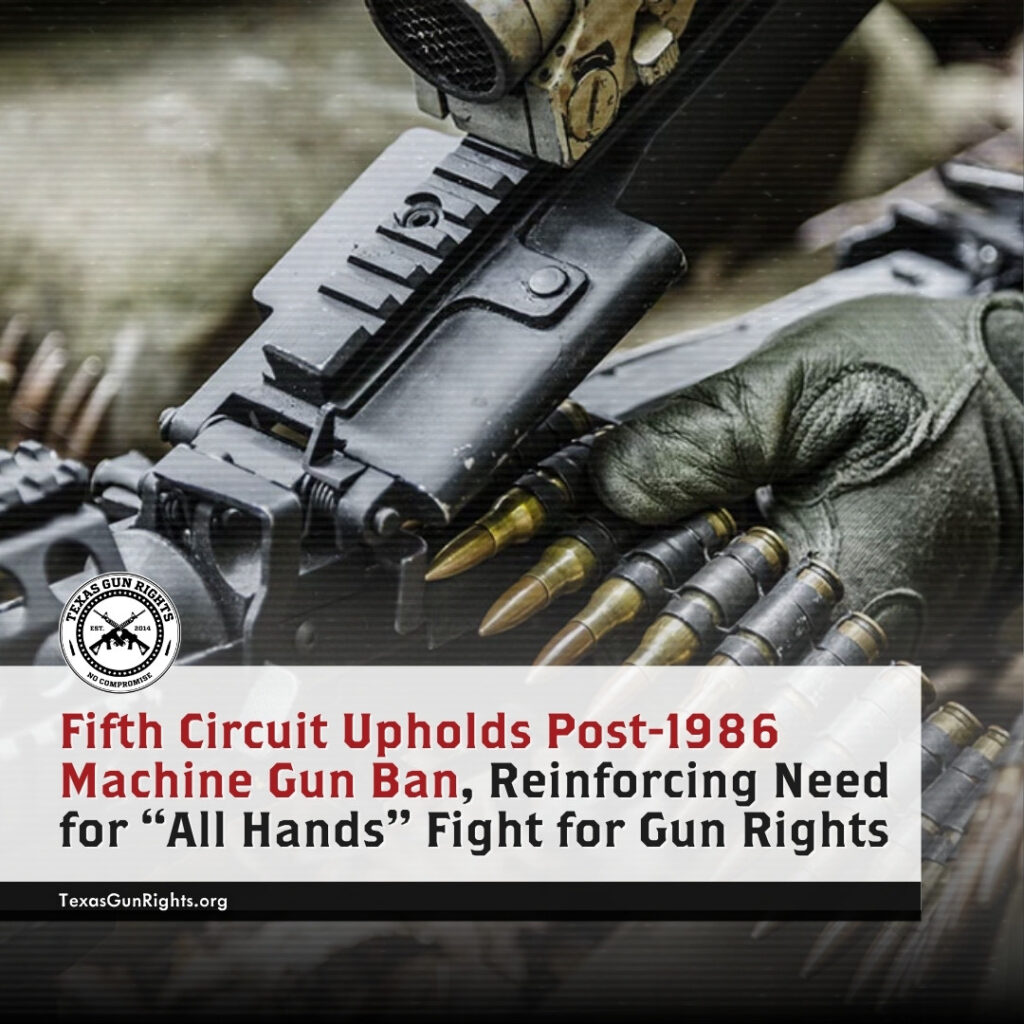 Fifth Circuit Upholds Post-1986 Machine Gun Ban, Reinforcing Need for “All Hands” Fight for Gun Rights