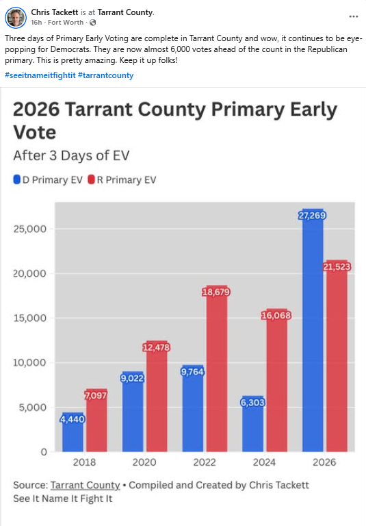 Across Texas, voters are energized — both Republican and Democrat. But where Democrats are currently firing on all cylinders, GOP turnout is inconsistent, sluggish, or simply not keeping pace with the enthusiasm seen on the left.